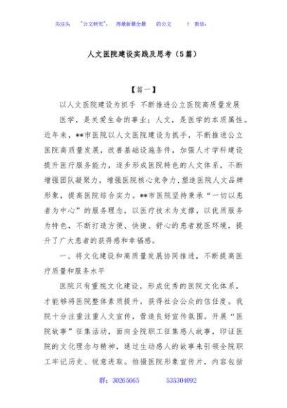 / (5篇)人文医院建设实践及思考