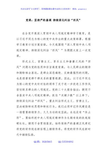 / 党课:坚持严的基调 持续深化纠治“四风”