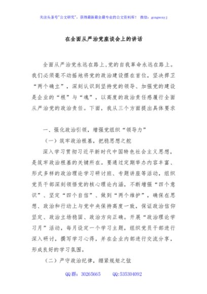 / 在全面从严治党座谈会上的讲话