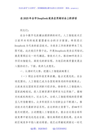 / 在2025年全市DeepSeek政务应用培训会上的讲话