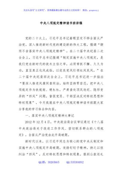 / 中央八项规定精神读书班讲稿
