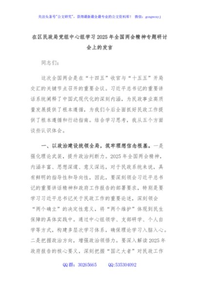 / 在区民政局党组中心组学习2025年全国两会精神专题研讨会上的发言