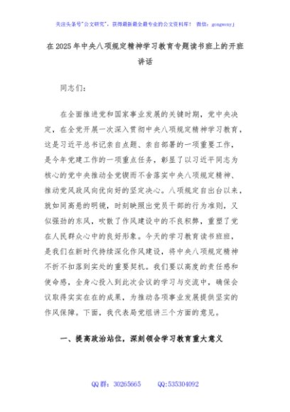 / 在2025年中央八项规定精神学习教育专题读书班上的开班讲话