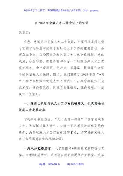 / 在2025年全旗人才工作会议上的讲话