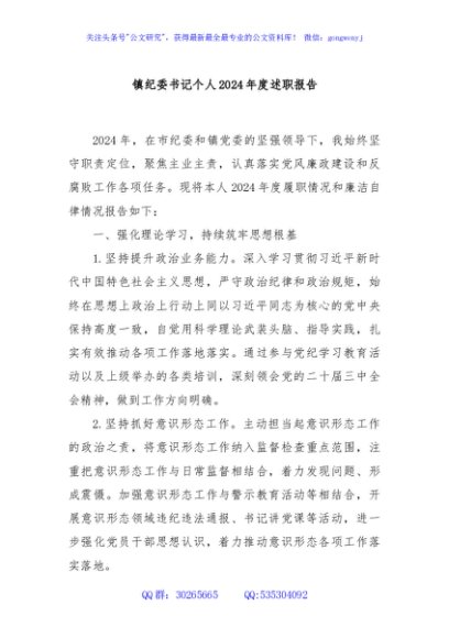 / 镇纪委书记个人2024年度述职报告