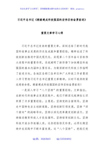 / 习近平总书记《朝着建成科技强国的宏伟目标奋勇前进》重要文章学习心得
