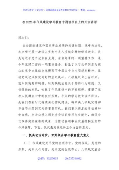 / 在2025年作风建设学习教育专题读书班上的开班讲话