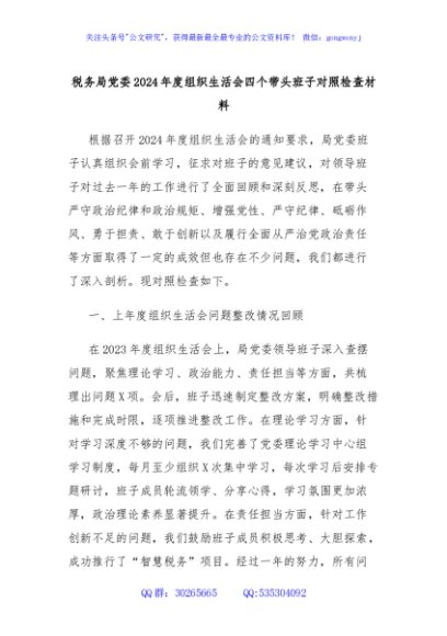 / 税务局党委2024年度组织生活会四个带头班子对照检查材料