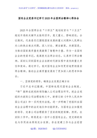 / 国有企业党委书记学习2025年全国两会精神心得体会