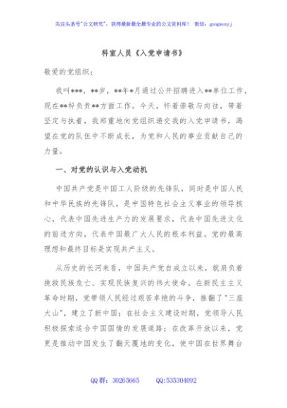 / 科室人员《入党申请书》