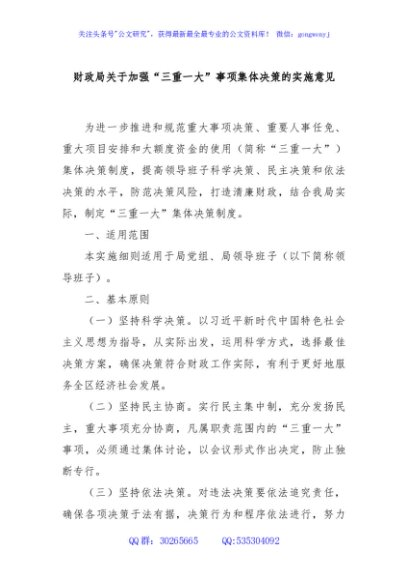 / 财政局关于加强“三重一大”事项集体决策的实施意见