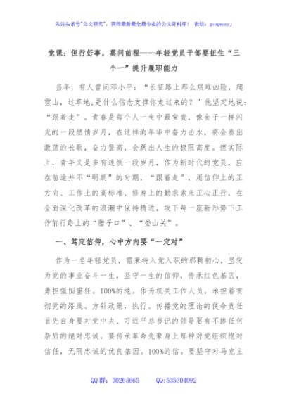 / 党课:但行好事,莫问前程——年轻党员干部要扭住“三个一”提升履职能力