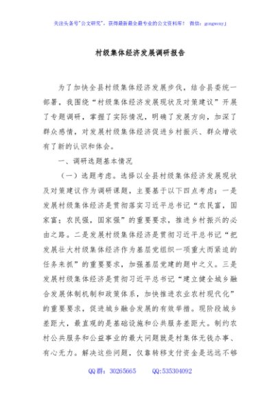 / 村级集体经济发展调研报告