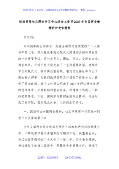 / 财政局局长在理论学习中心组会上学习2025年全国两会精神研讨发言材料