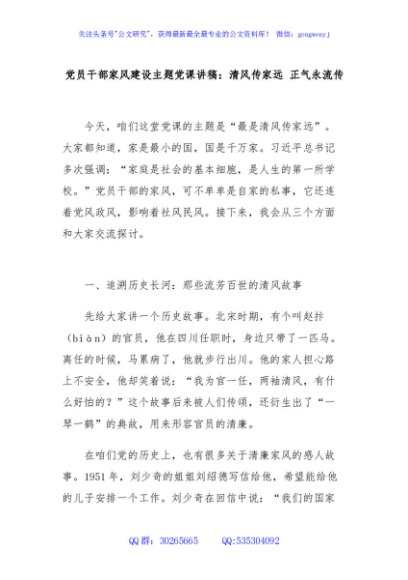 / 党员干部家风建设主题党课讲稿:清风传家远 正气永流传