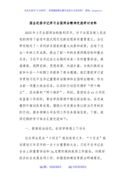 / 国企纪委书记学习全国两会精神交流研讨材料