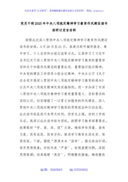 / 党员干部2025年中央八项规定精神学习教育作风建设读书班研讨发言材料