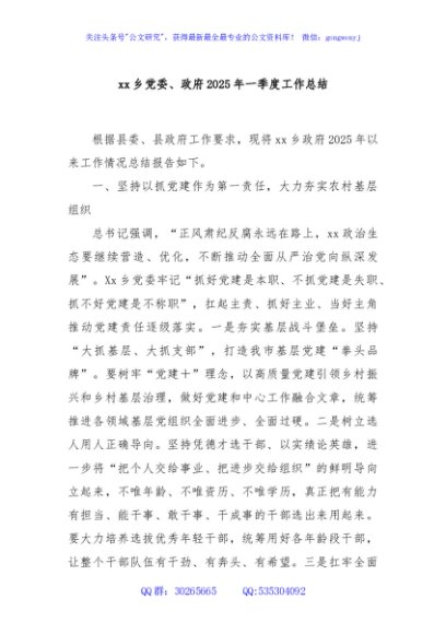/ xx乡党委、政府2025年一季度工作总结