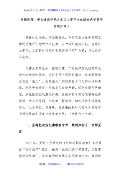 / 党课讲稿:带头遵规守纪自觉以上率下立起新时代党员干部的好样子