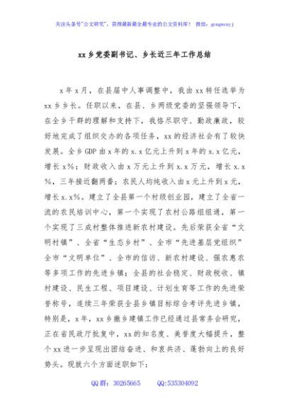 / xx乡党委副书记、乡长近三年工作总结