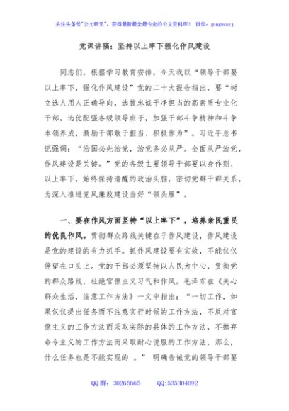 / 党课讲稿:坚持以上率下强化作风建设