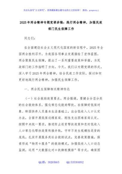 / 2025年两会精神专题党课讲稿:践行两会精神,加强民政部门民生保障工作