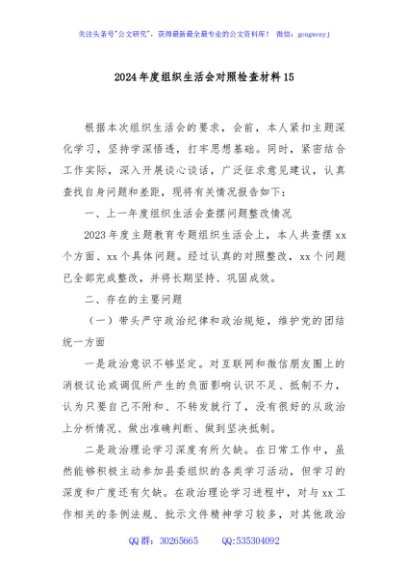 / 2024年度组织生活会对照检查材料15