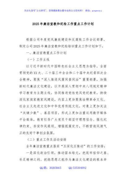 / 2025年廉洁宣教和纪检工作重点工作计划