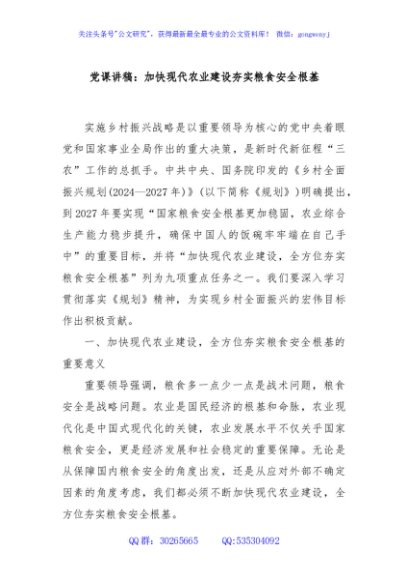/ 党课讲稿:加快现代农业建设夯实粮食安全根基