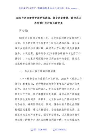 / 2025年两会精神专题党课讲稿:领会两会精神,助力农业农村部门乡村振兴新发展