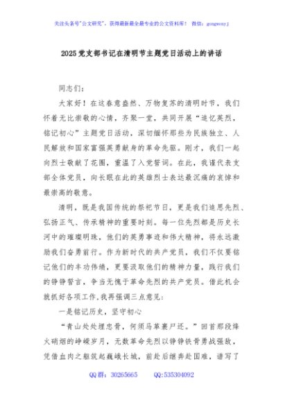 / 2025党支部书记在清明节主题党日活动上的讲话