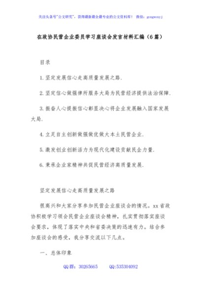 / (6篇)在政协民营企业委员学习座谈会发言材料汇编