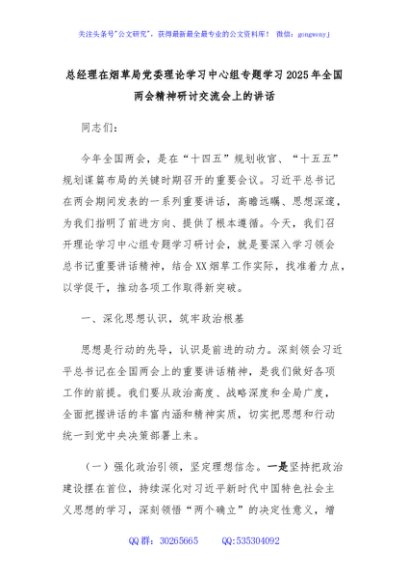 / 总经理在烟草局党委理论学习中心组专题学习2025年全国两会精神研讨交流会上的讲话