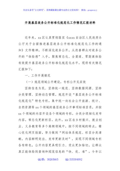 / 开展基层政务公开标准化规范化工作情况汇报材料