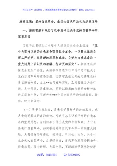 / 廉政党课:坚持自我革命,推动全面从严治党向纵深发展