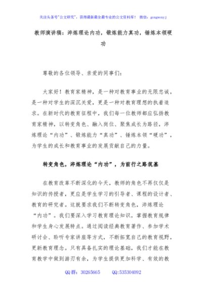 / 教师演讲稿:淬炼理论内功,锻炼能力真功,锤炼本领硬功