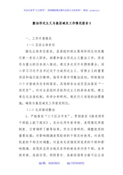 / 整治形式主义为基层减负工作情况报告3