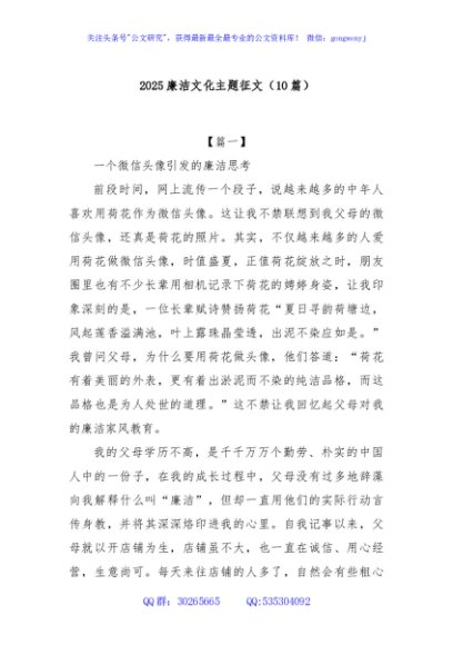 / (10篇)2025廉洁文化主题征文