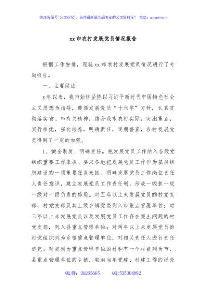 / xx市农村发展党员情况报告