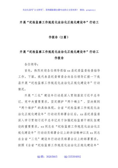 / (2篇)开展“纪检监察工作规范化法治化正规化建设年”行动工作报告