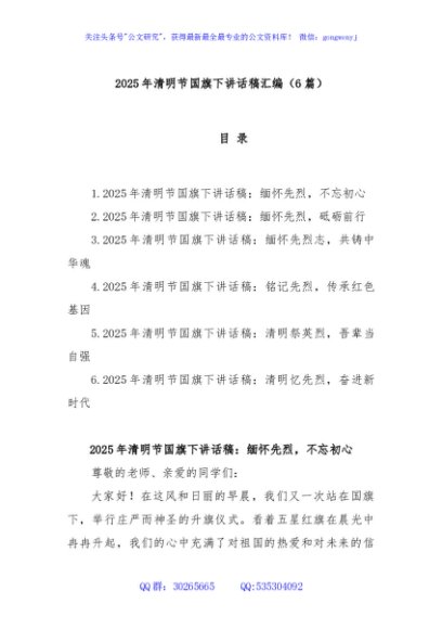 / (6篇)2025年清明节国旗下讲话稿汇编
