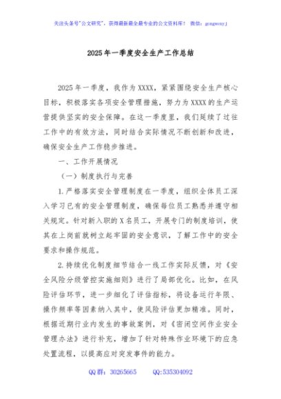 2025年一季度安全生产工作总结