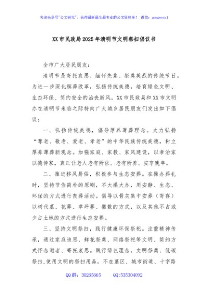 / XX市民政局2025年清明节文明祭扫倡议书