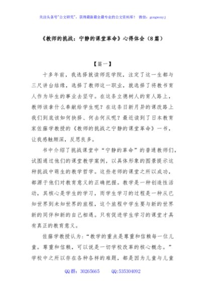 / (8篇)《教师的挑战:宁静的课堂革命》心得体会