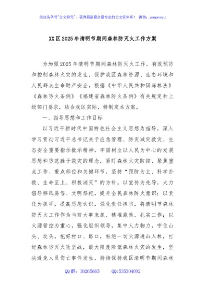 / XX区2025年清明节期间森林防灭火工作方案