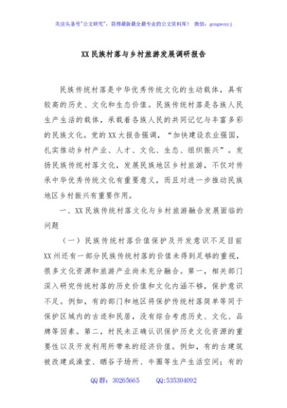 / XX民族村落与乡村旅游发展调研报告