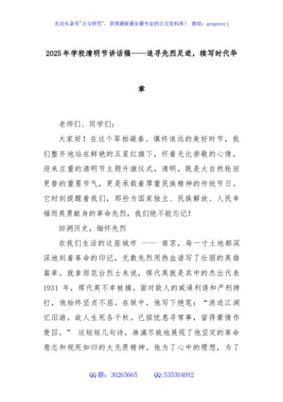 / 2025年学校清明节讲话稿——追寻先烈足迹,续写时代华章