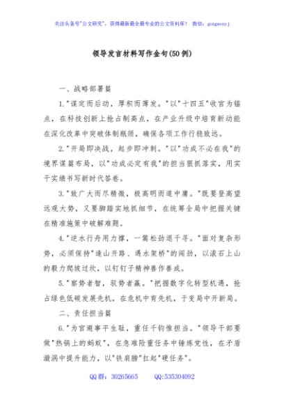 / (50例)领导发言材料写作金句