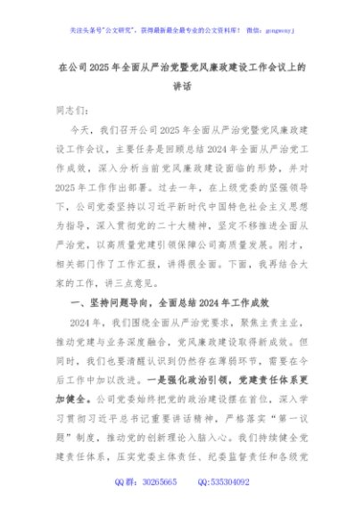 / 在公司2025年全面从严治党暨党风廉政建设工作会议上的讲话