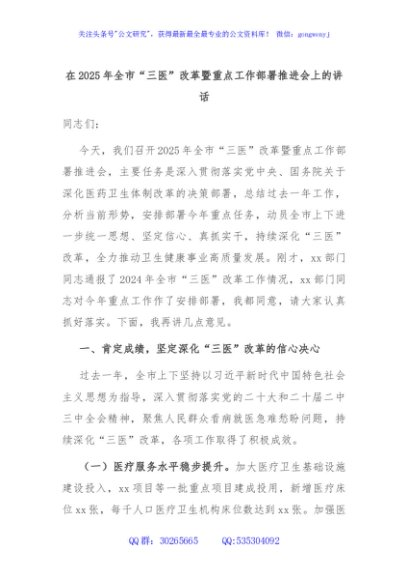/ 在2025年全市“三医”改革暨重点工作部署推进会上的讲话